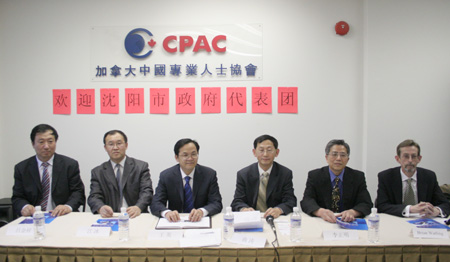 由沈阳市副市长王英率领的沈阳市政府代表团近日访问多伦多,代表团成员包括沈阳经贸委官员以及辽宁著名民营企业家。3月29日下午,沈阳代表团在加拿大中国专业人士协会(CPAC)与华社各界人士见面,CPAC理事长曲涛,中国驻多伦多总领馆副总领事李正明出席了见面会。
