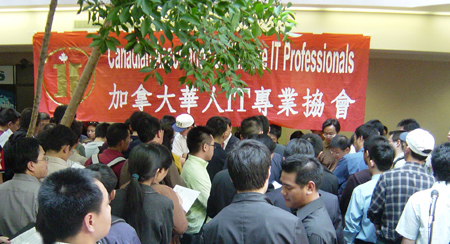 5月13日,加拿大IT专业人士协会(Canadian Association of Chinese IT Professionals-CACIT)和加拿大主流社会最大的专业人才招聘公司之一TES(The Employment Solution)联合举办”2006年度大型IT人才招聘会“。近800名求职者携带简历参加了此次招聘会,参加人数远远超过了举办单位预期的200-300人。参加本次招聘会的不少求职者是不远数百公里,从蒙特利尔、渥太华、温莎等地前来参加招聘会。