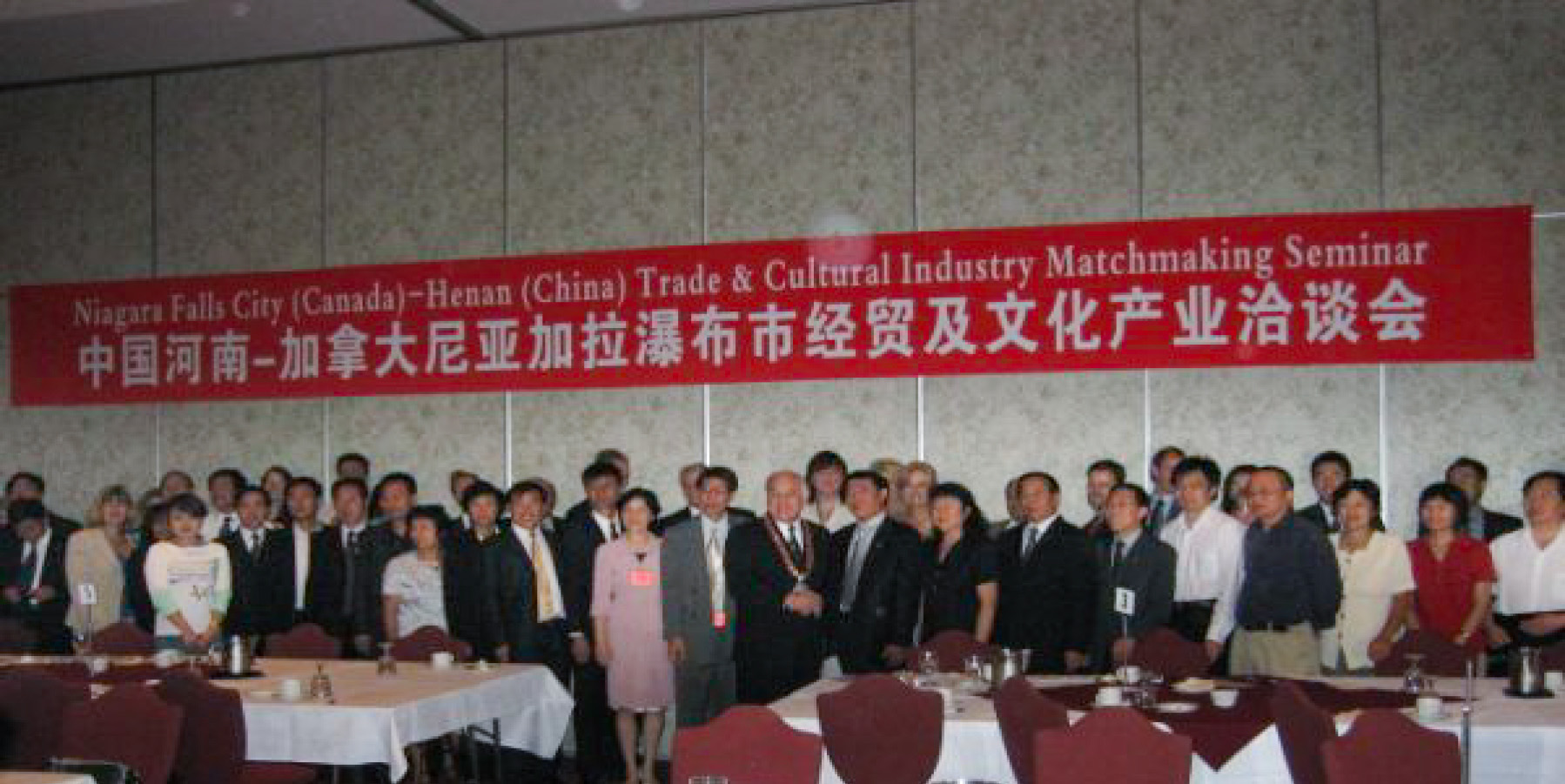 7月29日,应加拿大尼亚加拉瀑布市市长R.T.(TED)Salci的邀请,由河南省文联吴长忠主席为团长,河南省经贸及文化产业代表团,在尼亚加拉瀑布市成功地举办了中国河南-加拿大尼亚加拉瀑布市经贸及文化产业洽谈会。