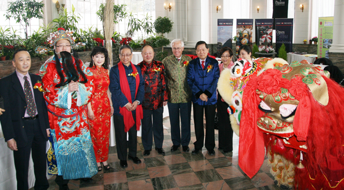 中国驻多总领事陈立钢,副总领事张美芳,加拿大总理哈伯委派的联邦国会议员德科克,密西沙加安全委员会主席胡子修先生和夫人,加拿大佛教会会长、湛山精舍住持释达义法师,海南航空公司驻多伦多办事处总经理方新宇、Maholi公司总裁马舟良、加拿大多元文化民间艺术协会会长沈谢元、湖北商会会长洪洋、辽宁商会会长于首三,及当地很多商会代表等出席了酒会。