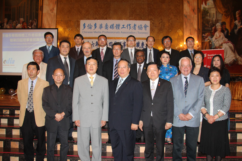 多伦多华裔媒体工作者协会于5月31日晚在列治文山钓鱼台国宴隆重举行第四届理事会就职庆典晚宴,加拿大联邦参议员胡子修、国会议员梁中心、麦家廉,安省旅游、文化和体育厅长陈国治,安省科技及创新厅长莫伟力,省议员包坚信、黄素梅等三级政府官员、中国驻多伦多总领事房利夫妇、副总领事张美芳率新闻领事王晶晖、王珞与本地各界代表近200人应邀出席。