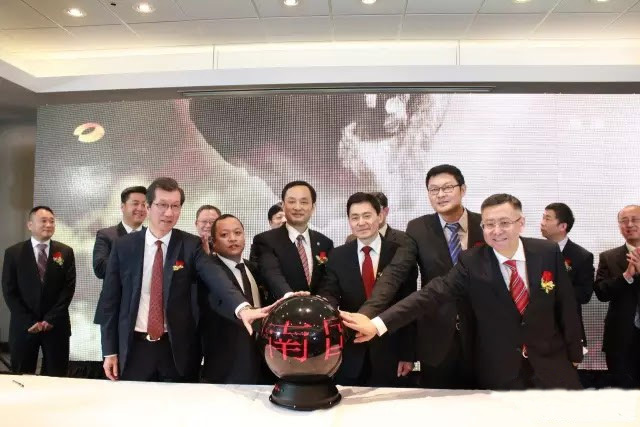 随后湖南省对外文化交流协会会长张文雄、中国驻多伦多总领事薛冰,加拿大国会议员、国会加中协会主席谭耕,安省公民、移民及国际贸易厅长陈国治(Michael Chan),湖南广播电视台台长吕焕斌和加拿大环球传媒董事局主席彭文胜共同启动水晶球,标志着两台战略合作正式开始。随着水晶球的闪动,大屏幕切换到了湖南卫视2016元旦跨年晚会的画画,这也标志着湖南广电的全球营销战略在北美的全面启动。湖南省人民政府新闻办公室主任周湘、湖南省新闻出版广电局局长朱建纲、湖南省外事侨务办公室副主任黎里溪、湖南出版投资控股集团董事长龚曙光、加拿大联邦国会议员马万里(Majid Jowhari)、安省省议员董晗鹏以及加拿大各界商会代表和加拿大国际电视台的长期合作伙伴等见证了这一重要时刻。