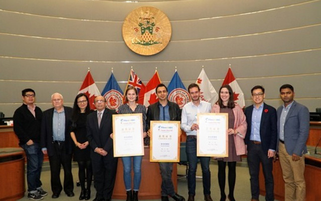 天英汇国际创新创业大赛多伦多赛区决赛暨颁奖典礼,由加拿大华创会主办,万锦市市长薛家平出席盛会并致辞,香港潮州商会会长胡剑江专程从香港前来担任主要嘉宾及导师。其他参与的专业人士包括Irap(联邦政府工业研究支持部门)、VentureLab、安省人才中心、TechConnex、York Angel Investors代表,知名教授、科技专家、天使投资人及名企业家等。