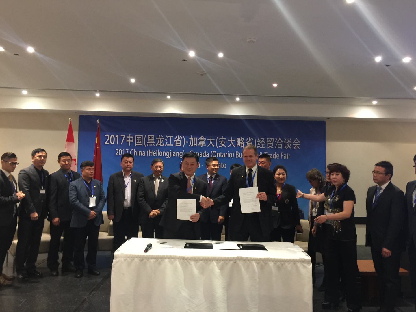 11月27日上午。由加拿大黑龙江总商会和中国黑龙江省商务厅共同主办的,2017 中国(黑龙江省)-加拿大(安大略省)经贸洽谈会,在多伦多王子酒店圆满落幕。