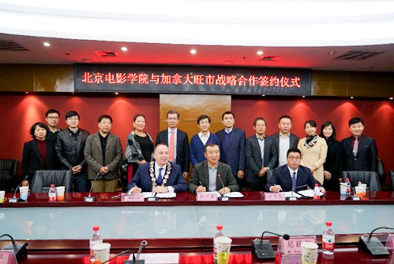 北京电影学院、加拿大旺市政府和加拿大工商联合总会三方代表于2017年12月7日在北京签署了北京电影学院加拿大北美分院合作备忘录(MOU)。