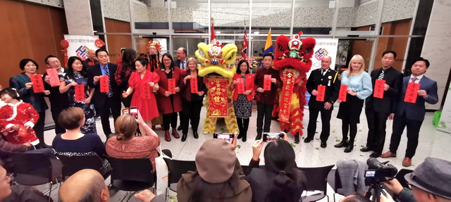 汉密尔顿市华商会於2月2日(农历兔年正月十二)在汉密尔顿市府大会堂举行了新春招待会,有关城市政要、驻多伦多领事官员、各界友好人士和市民等逾200人出席,共迎新春佳节,共享浓浓年味,共话友谊与合作。出席活动的嘉宾包括:汉密尔顿市市长Andrea Horwath,中国驻多伦多总领事经济商务参赞刘林林,国会议员Dan Muys的代表,安省议员Dan Skelly的首席幕僚Grant Maclean,安省议员Monique Taylor和Sandy Shaw,多名市议员,市警察局副局长Paul Hamilton,市消防局局长David Cunliffe,市商务经济发展部经理Norm Shleehahn,市政执行官Janette Smith,市商会Paul Hawkins,节目表演赞助商August 8 Sushi & Dim Sum 店主Tanya Tang & Aki Rong。